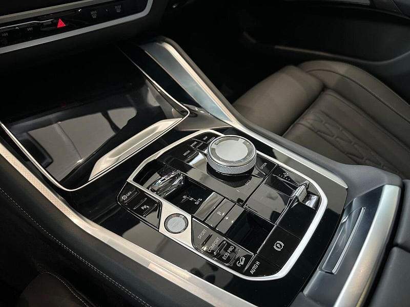Стеклянная отделка деталей интерьера CraftedClarity: переключатель переключения передач с подсветкой символа "X", регулятор громкости, контроллер iDrive, кнопка Start/Stop
