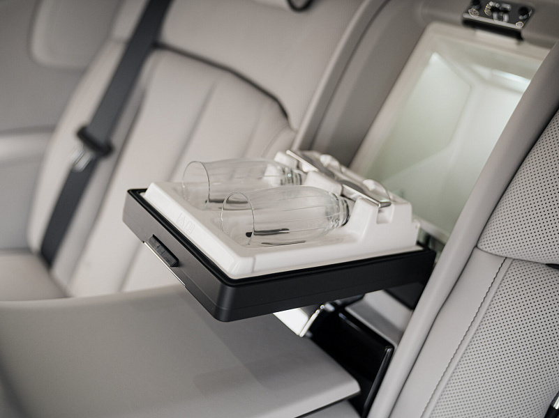 Задние раздельные сидения, с регулировками сидений, холодильником, джостиком управления и фужерами из хрусталя