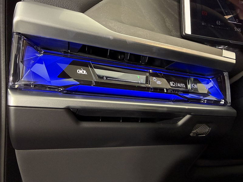 Стеклянная отделка деталей интерьера КрафтедКлэрити (CraftedClarity) для переключателя передач с подсветкой символа «Икс» ("X"), регулятора громкости, контроллера Ай-Драйв (iDrive) и кнопки Старт/Стоп (Start/Stop).