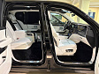 Раздельные кресла второго ряда с консолью, баром, холодильником и стеклянной перегородкой между пассажирским салоном и багажным отделением