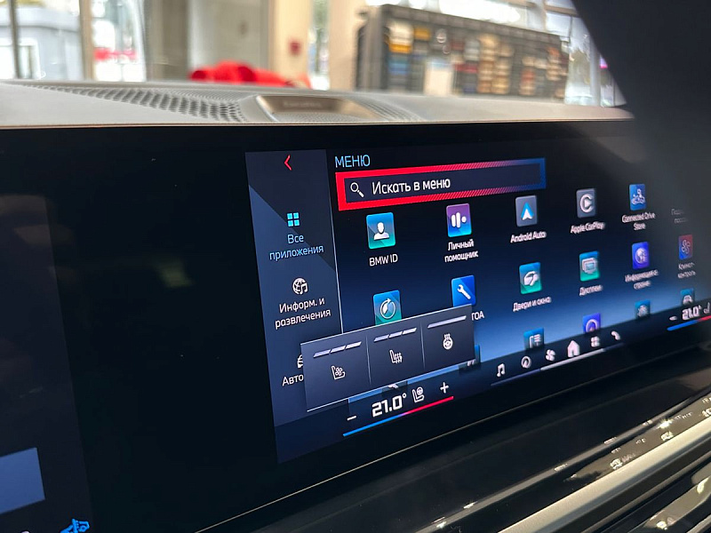 Бэ-Эм-Вэ Лайв Кокпит Профешнл (BMW Live Cockpit Professional): дисплей 12.3 дюйма (1920x1080), операционная система Бэ-Эм-Вэ 7.0 (BMW Operating System 7.0) с настраиваемыми виджетами для отображения информации в реальном времени, голосовое управление, личный кабинет пользователя (обеспечивает уникальную идентификацию и аутентификацию с сохраненными профилями), жесткий диск Эйч-Ди-Ди (HDD) 20 Гб (20 GB), 4-диапазонный тюнер с Ар-Ди-Эс (RDS) и Ти-Эм-Си (TMC), подключение 4G (4G) Эл-Ти-И (LTE) (проводная сим-карта (SIM-карта) в автомобиле)