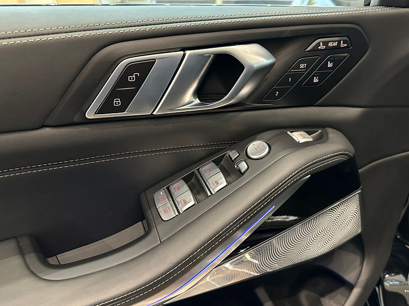 Стеклянная отделка деталей интерьера КрафтедКлэрити (CraftedClarity) для переключателя передач с подсветкой символа «Икс» ("X"), регулятора громкости, контроллера Ай-Драйв (iDrive) и кнопки Старт/Стоп (Start/Stop).