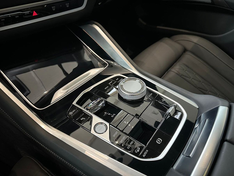 Стеклянная отделка деталей интерьера КрафтедКлэрити (CraftedClarity) для переключателя передач с подсветкой символа «Икс» ("X"), регулятора громкости, контроллера Ай-Драйв (iDrive) и кнопки Старт/Стоп (Start/Stop).