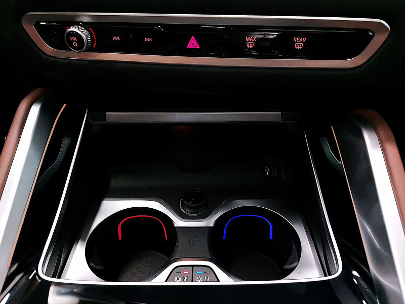 Стеклянная отделка деталей интерьера КрафтедКлэрити (CraftedClarity) для переключателя передач с подсветкой символа «Икс» ("X"), регулятора громкости, контроллера Ай-Драйв (iDrive) и кнопки Старт/Стоп (Start/Stop).