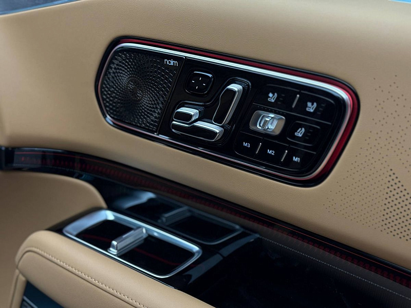 Внутри – натуральная кожа, дерево и алюминий. И главное – атмосфера… Премиальная аудиосистема Naim – 32 динамика и 3868 Вт. Кресла второго ряда с функцией невесомости не только греют, вентилируют и массажируют, но и поворачиваются на 180 градусов, превращая салон в переговорную для самых важных решений.